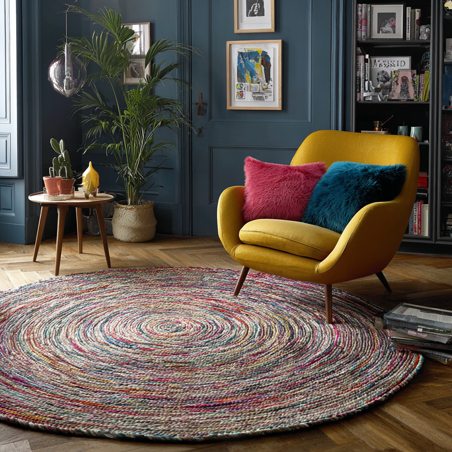 Le tapis rond est idéal pour casser la rigidité des lignes droites d’une pièce. Sa forme circulaire adoucit l’espace et crée une atmosphère conviviale et moderne. Dans un salon, une chambre ou une salle de jeux, il attire le regard et devient une véritable pièce maîtresse de la décoration. Disponible en grand format pour structurer un espace, ou en petit modèle pour compléter un coin lecture ou un bureau, il apporte une note d’originalité et de dynamisme. Tapis Rond.