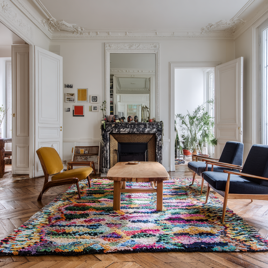 Pour dynamiser une pièce, rien de tel qu’un tapis coloré. Avec ses teintes vives et ses motifs audacieux, il devient l’élément central de la décoration. Dans une chambre d’enfant, un bureau créatif ou même un salon sobre, il attire le regard et insuffle de la bonne humeur. Les amateurs d’intérieurs vivants et expressifs apprécient particulièrement ce style qui permet de sortir des sentiers battus. Tapis coloré