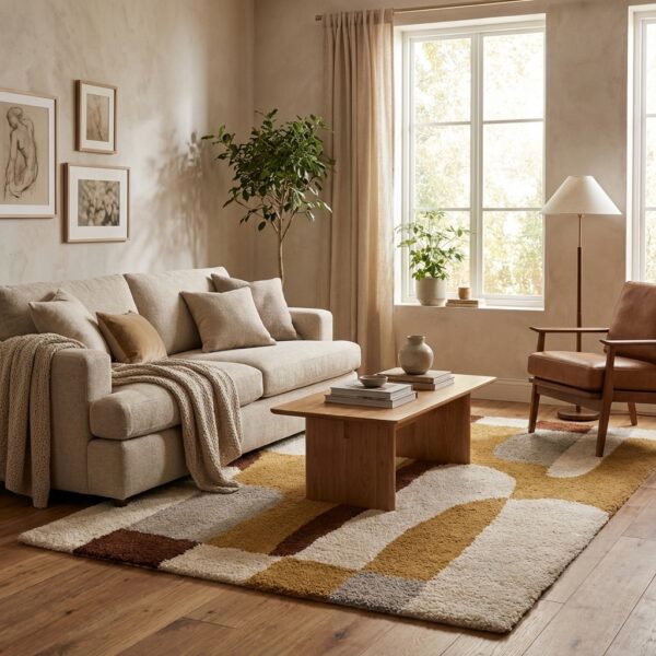D’autres tapis rectangulaires se distinguent par leurs motifs géométriques, orientaux ou modernes. Ils deviennent alors des pièces fortes, capables de transformer l’atmosphère d’une pièce.