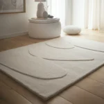 Ce grand tapis sculpté beige s’inspire des formes naturelles des galets, avec un relief élégant composé de quatre formes circulaires abstraites sculptées à la main. Entièrement réalisé en 100 % laine, il présente un jeu subtil de hauteurs (velours haut et bas) qui crée une sensation à la fois visuelle et tactile, sophistiquée sans ostentation. Sa teinte beige douce s’intègre parfaitement dans un intérieur scandinave lumineux comme dans un décor moderniste aux lignes architecturées.