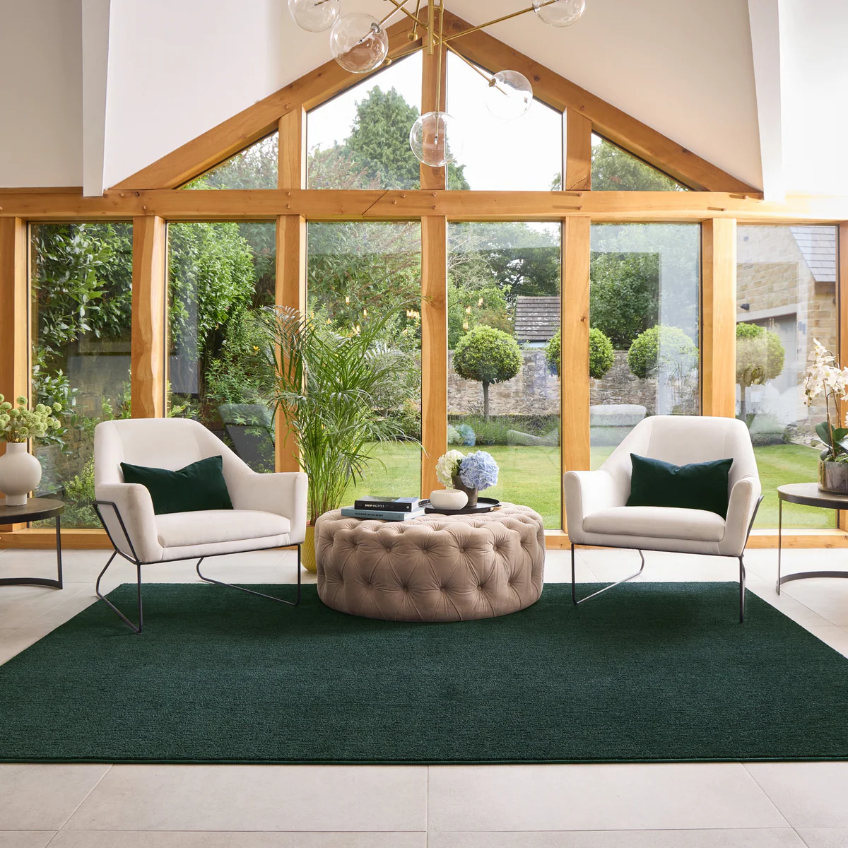 Grand Tapis Salon Sense Vert – 100 % polyester recyclé, fabriqué au Royaume-Uni