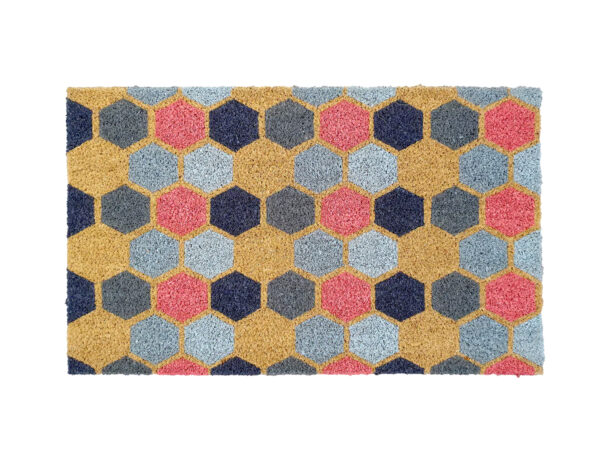 Tapis en fibres de coco naturelles – « Hexagones colorés »