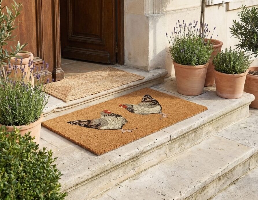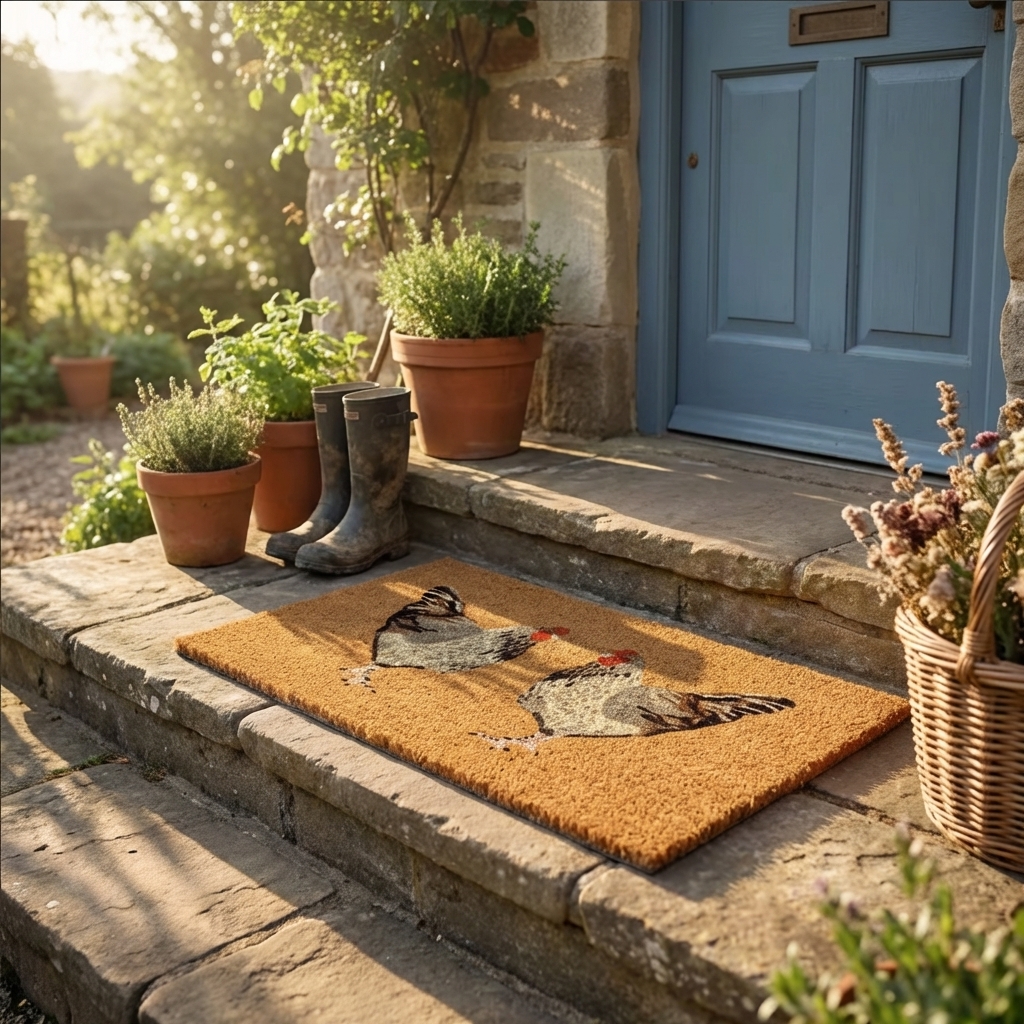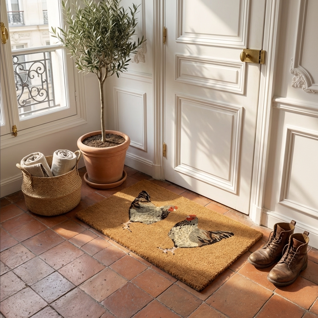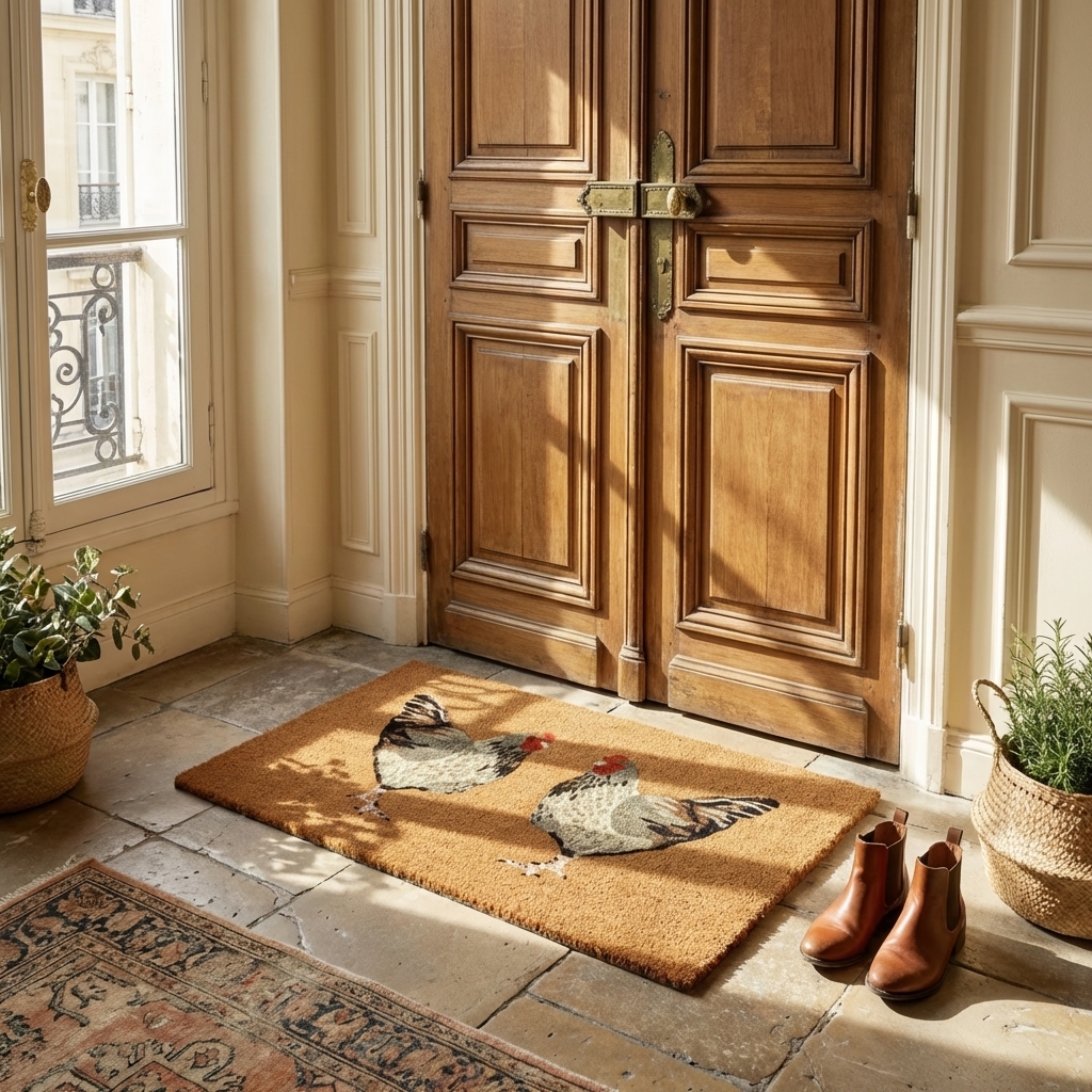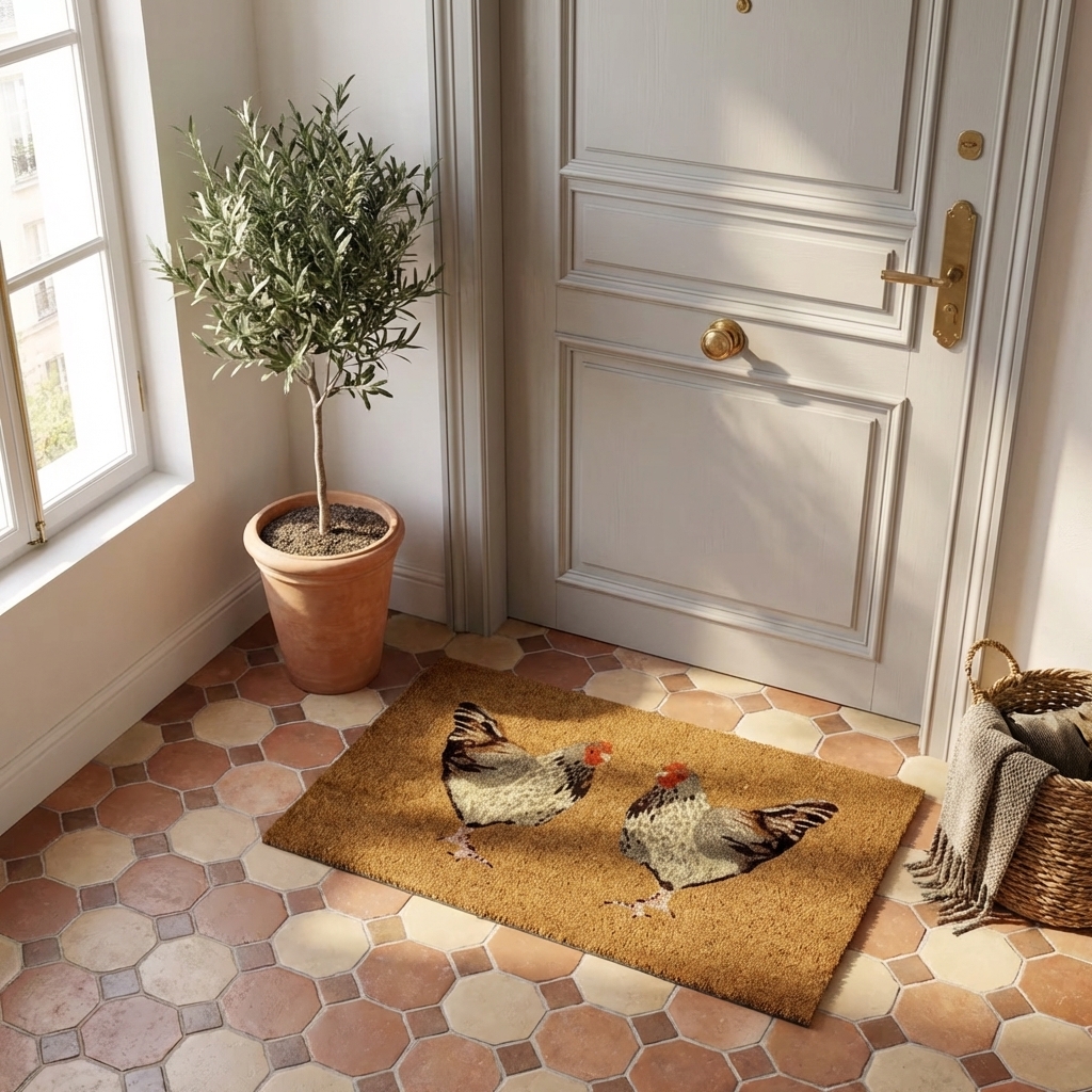 Son motif de poules apporte une touche chaleureuse et authentique, idéale pour une entrée accueillante.