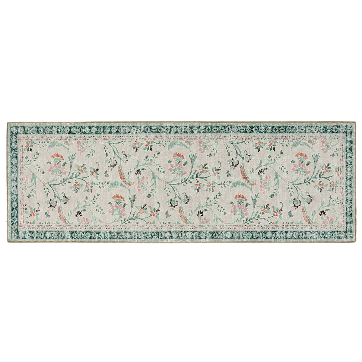 Tapis de couloir vert style Anglais — Un tapis vintage à fleurs éco-responsable lavable pour votre couloir