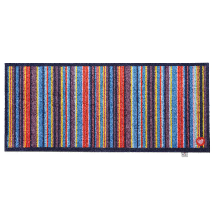 Le tapis couloir Rayures Indigo 65 × 150 cm incarne une nouvelle génération de tapis lavables : esthétiques, responsables et haut de gamme. Conçu au Royaume-Uni à partir de coton et de fibres recyclées, il conjugue savoir-faire britannique, qualité durable et engagement écologique. Ses rayures verticales aux teintes intenses – bleu marine en dominante, relevé de touches rouges, jaunes, violettes et roses – transforment le couloir en un espace vivant et raffiné.