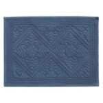 Le jacquard dessine un motif d’arabesques délicatement texturées. Dans cette nuance tempête, un bleu pastel foncé et grisé, le tapis évoque les couleurs d’un ciel calme après l’orage. Cette tonalité apporte une profondeur douce à la salle d’eau, idéale pour créer une ambiance moderne et apaisée.