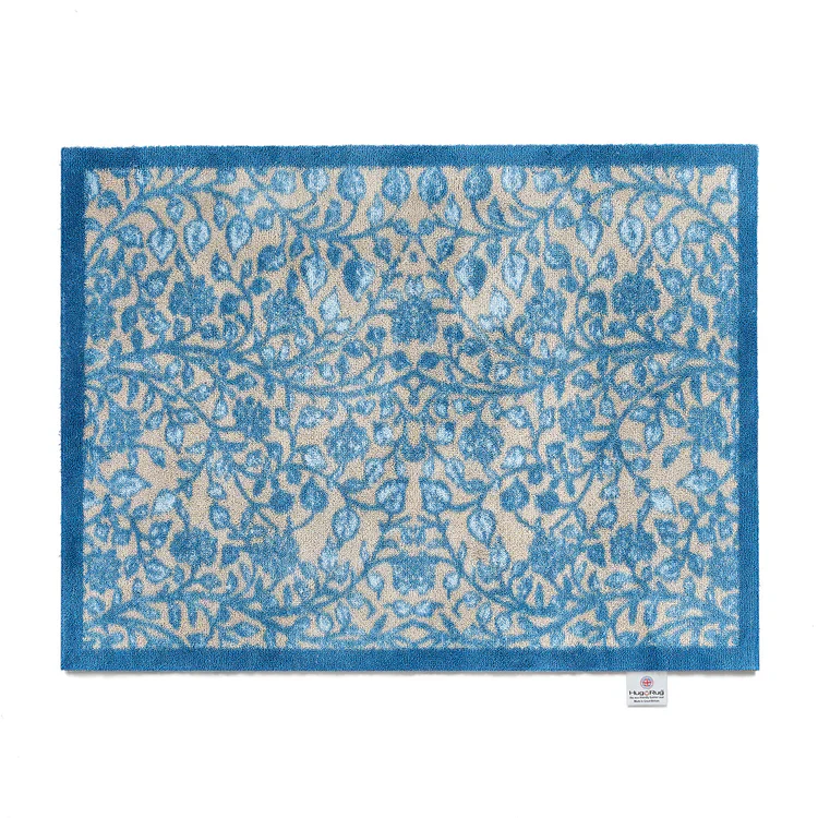 Le tapis d’entrée Fleurs Bleues Entrelacées 65 × 85 cm s’inspire des motifs intemporels de William Morris pour proposer une création raffinée et poétique. Fabriqué au Royaume-Uni en 100 % coton recyclé, il allie esthétique florale, confort naturel et engagement écologique. Son décor « all-over » présente un enchevêtrement de fleurs et de feuillages bleus aux nuances variées, qui se détachent sur un fond beige lumineux, souligné par une élégante bordure bleue.