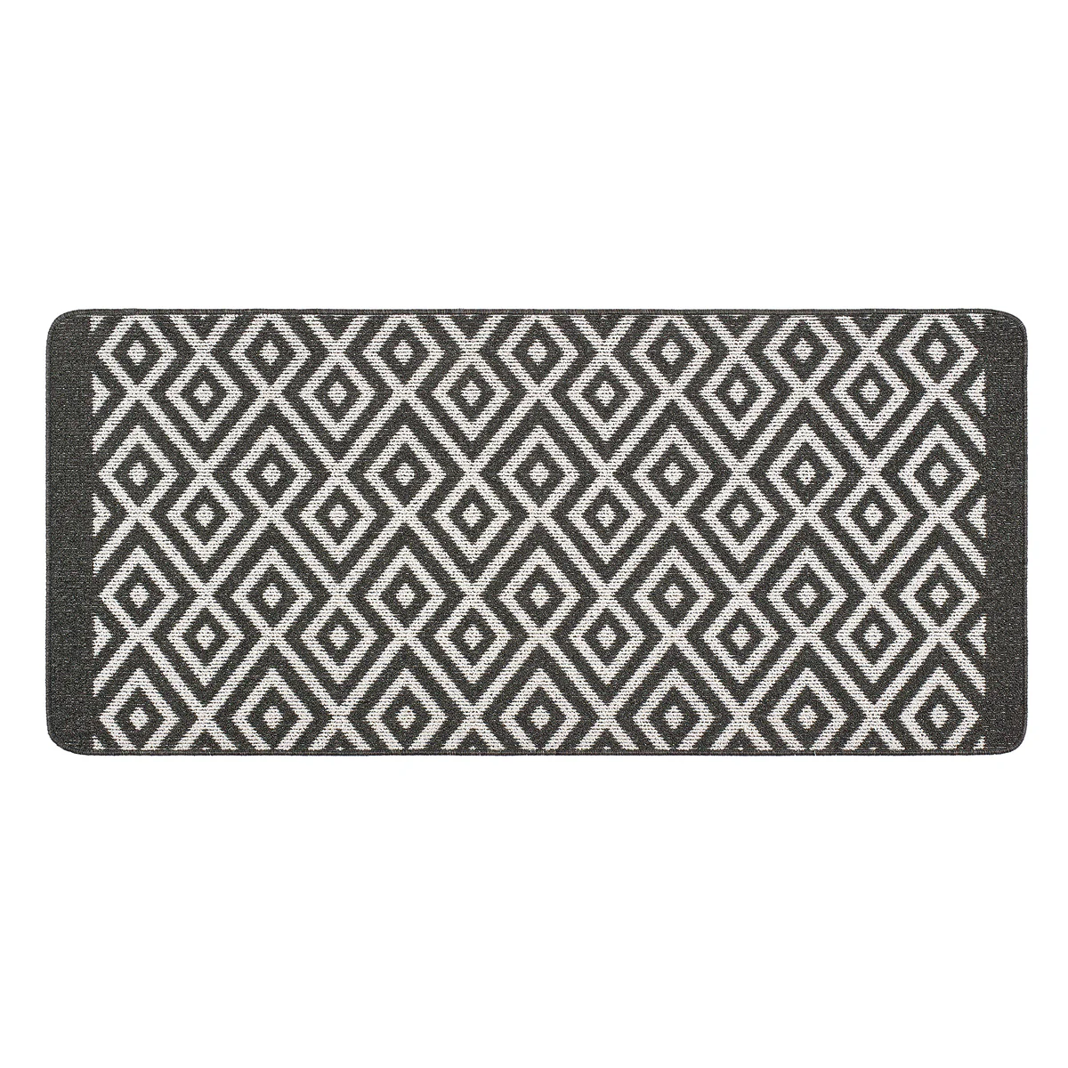 Tapis cuisine à losanges gris foncé – élégant, absorbant et lavable en machine