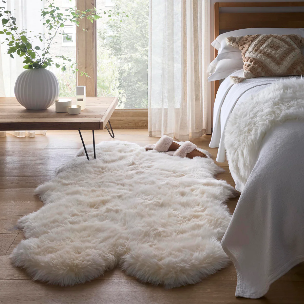 Tapis peau de mouton beige naturel — chaleur et élégance intemporelle