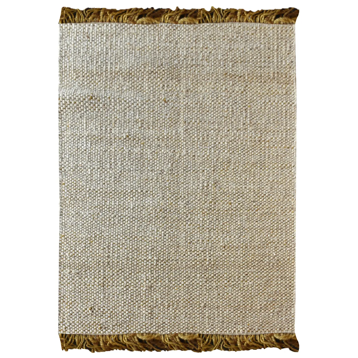 Tapis à franges dorées en chanvre – Élégance naturelle & volume texturé