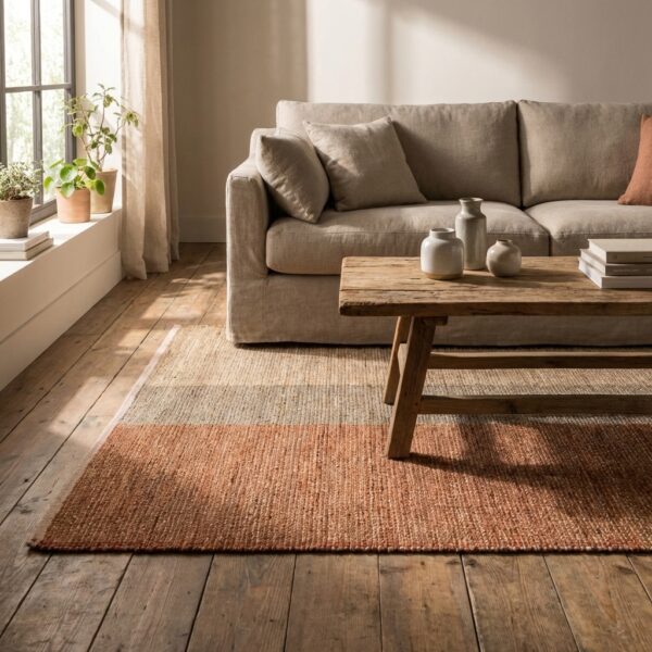 Le chanvre est l’une des fibres naturelles les plus résistantes. Son tissage dense conserve sa forme au fil du temps et résiste à l’usure quotidienne, ce qui en fait un tapis particulièrement adapté aux zones de passage. Sa douceur surprenante le rend confortable au quotidien, tandis que son toucher texturé renforce son caractère authentique et artisanal.
