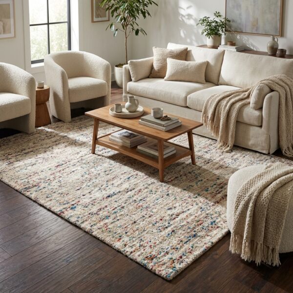 Son esthétique épurée et son tombé souple font du modèle Rohns une pièce idéale pour agrandir l’espace, donner du volume et enrichir visuellement une décoration déjà installée. Dans un salon, une chambre ou un hall d’entrée, il apporte un équilibre parfait entre sophistication et naturel, en particulier pour ceux qui recherchent des matières authentiques à travers notre collection tapis naturel.