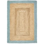 Tapis en jute bord bleu clair — tressage artisanal et fraîcheur estivale
