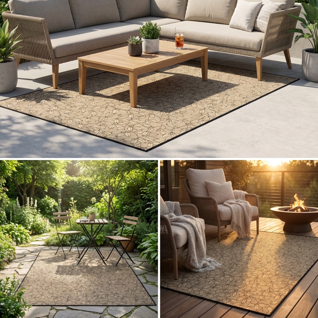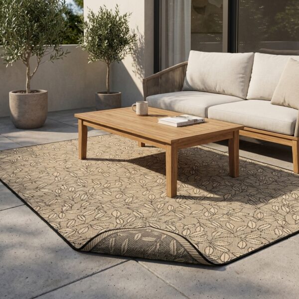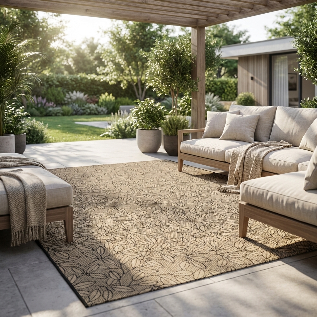 Tapis extérieur rectangulaire - Motif feuillage - Résistant pour terrasse
