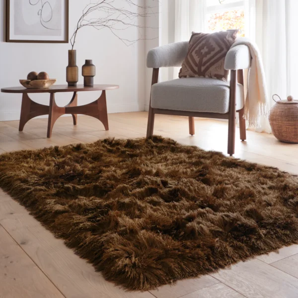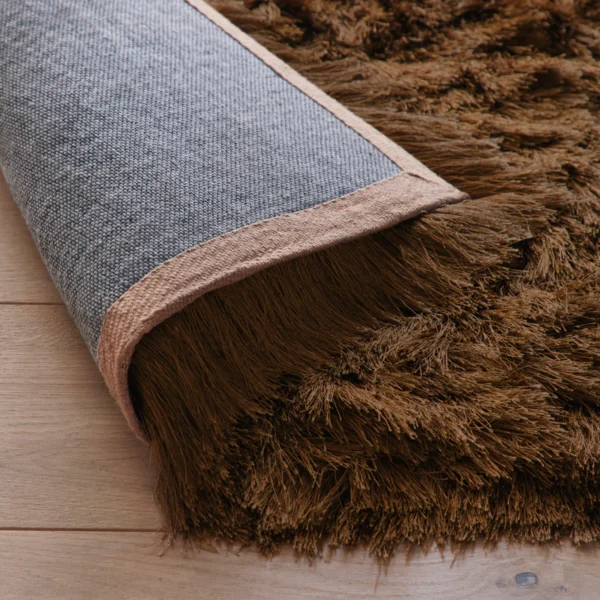 Malgré son aspect somptueux, le Glamour marron foncé se montre facile à entretenir. Le tuftage mécanique offre une grande stabilité des fibres, qui conservent leur brillance et leur douceur au fil du temps. Un simple passage d’aspirateur à brosse douce suffit à redresser le poil et à éliminer la poussière. Sa fibre polyester ne retient pas les taches légères et résiste bien à l’écrasement, ce qui en fait un tapis durable et pratique.