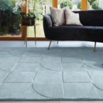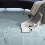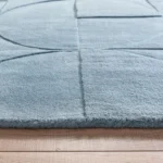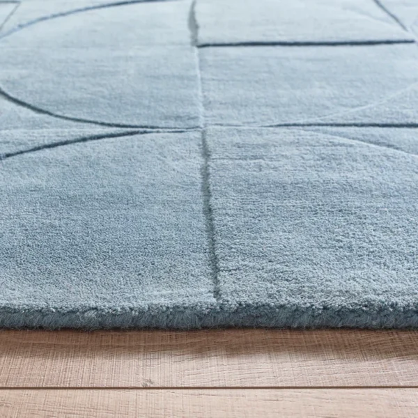 Pure laine sculptée, ce tapis bleu ciel offre confort et durabilité