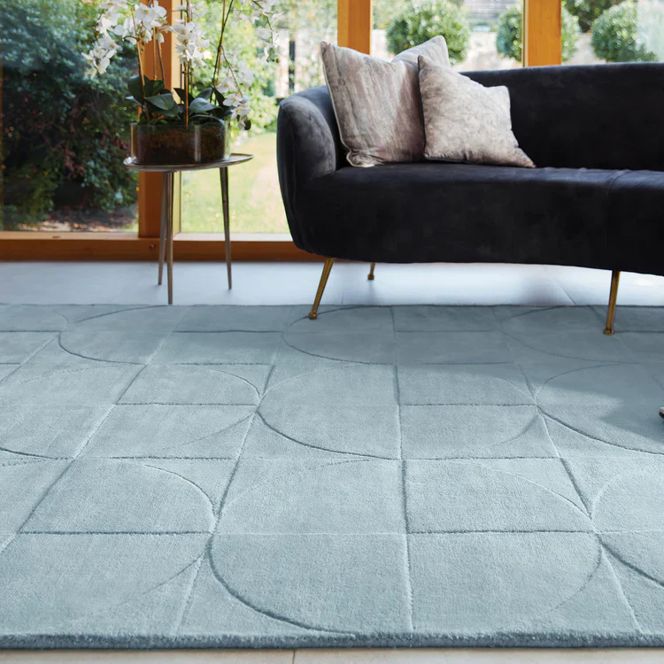 Tapis bleu salon — douceur visuelle et équilibre contemporain