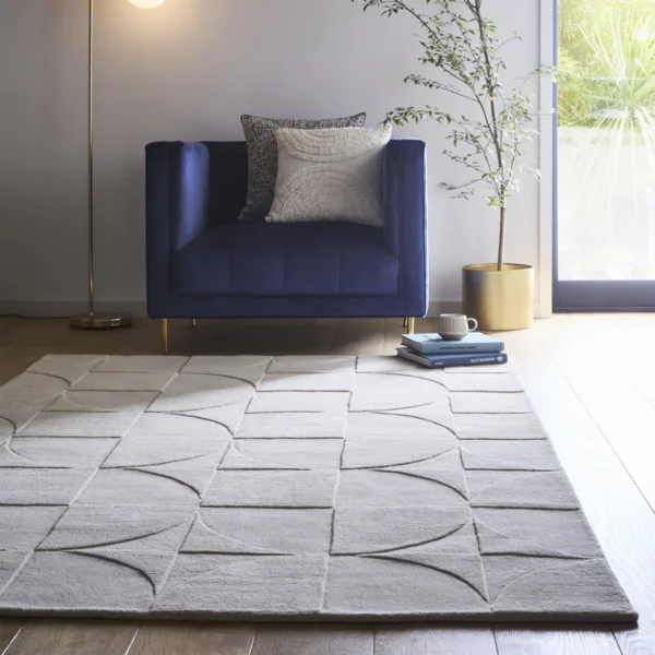 Tapis moderniste rectangulaire gris clair — luminosité et équilibre contemporain
