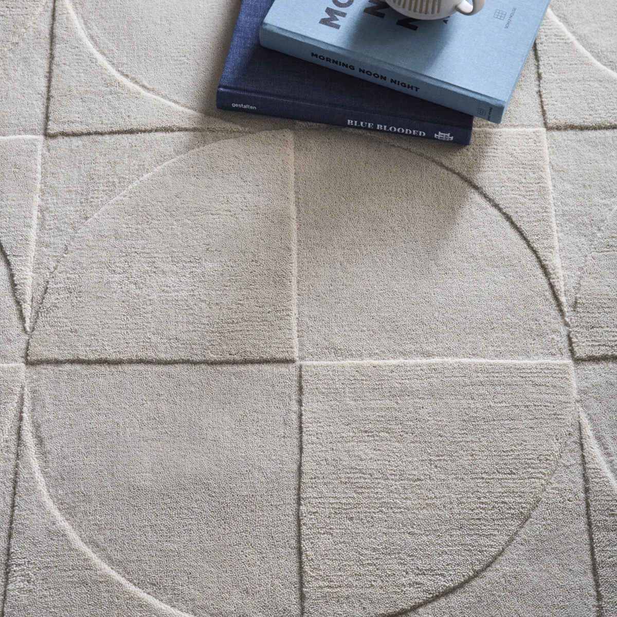 Tapis moderniste gris clair à disques sculptés — Design géométrique élégant