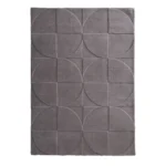Tapis gris moderniste à disques sculptés — pure laine tuftée main