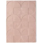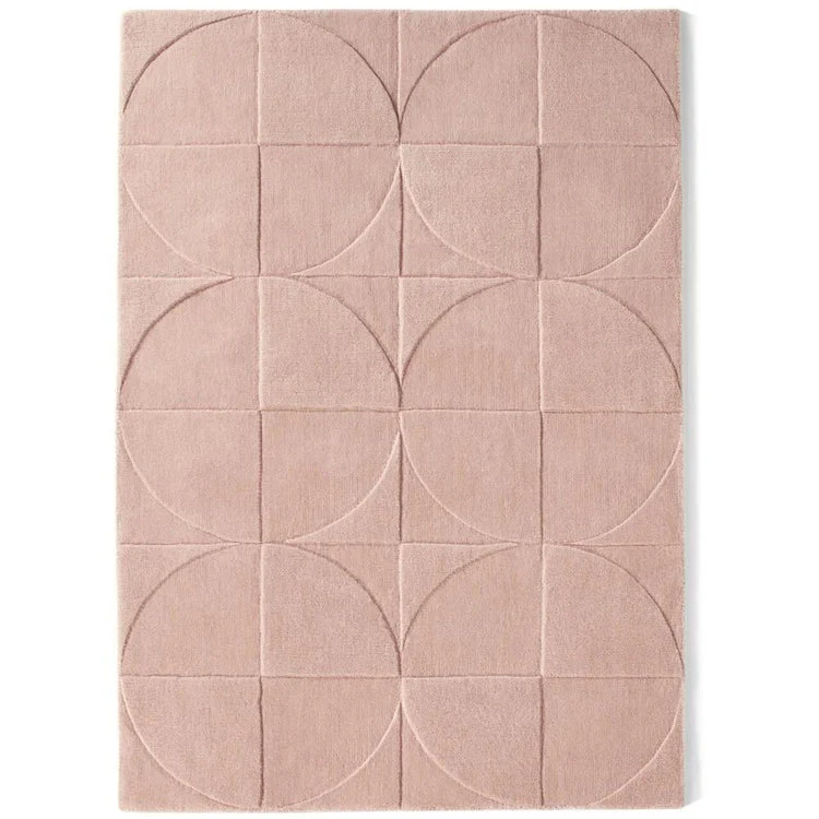 Tapis moderniste rose poudré à disques sculptés — pure laine tuftée main et design géométrique