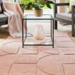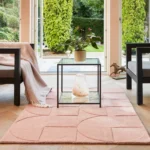 Tapis moderniste rose poudré — équilibre entre douceur et structure