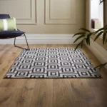Ce tapis s’intègre parfaitement dans la collection grand tapis salon et se décline également parmi nos tapis 300 × 200 cm. Sa forme élégante en fait aussi un superbe tapis rectangulaire idéal pour un intérieur design en noir et blanc.