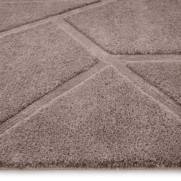 Grand Tapis Marron moderniste à motif géo sculpté discret – Tapis rectangulaire au toucher doux pour un salon contemporain.