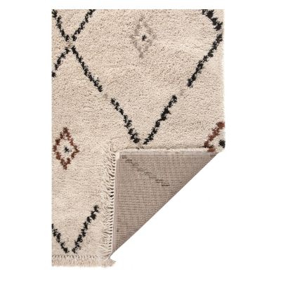 Tapis bohème beige inspiré du style berbère, en polypropylène doux et épais, idéal pour salon ou chambre, apportant chaleur, confort et authenticité.