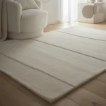 Tapis moderniste beige sculpté – lignes organiques et élégance paisible