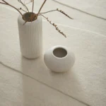 Ce tapis révèle un travail artisanal d’une grande précision. Les lignes sculptées à faible contraste créent un relief discret, jouant avec la lumière pour animer la surface sans la surcharger — une sophistication totalement maîtrisée.