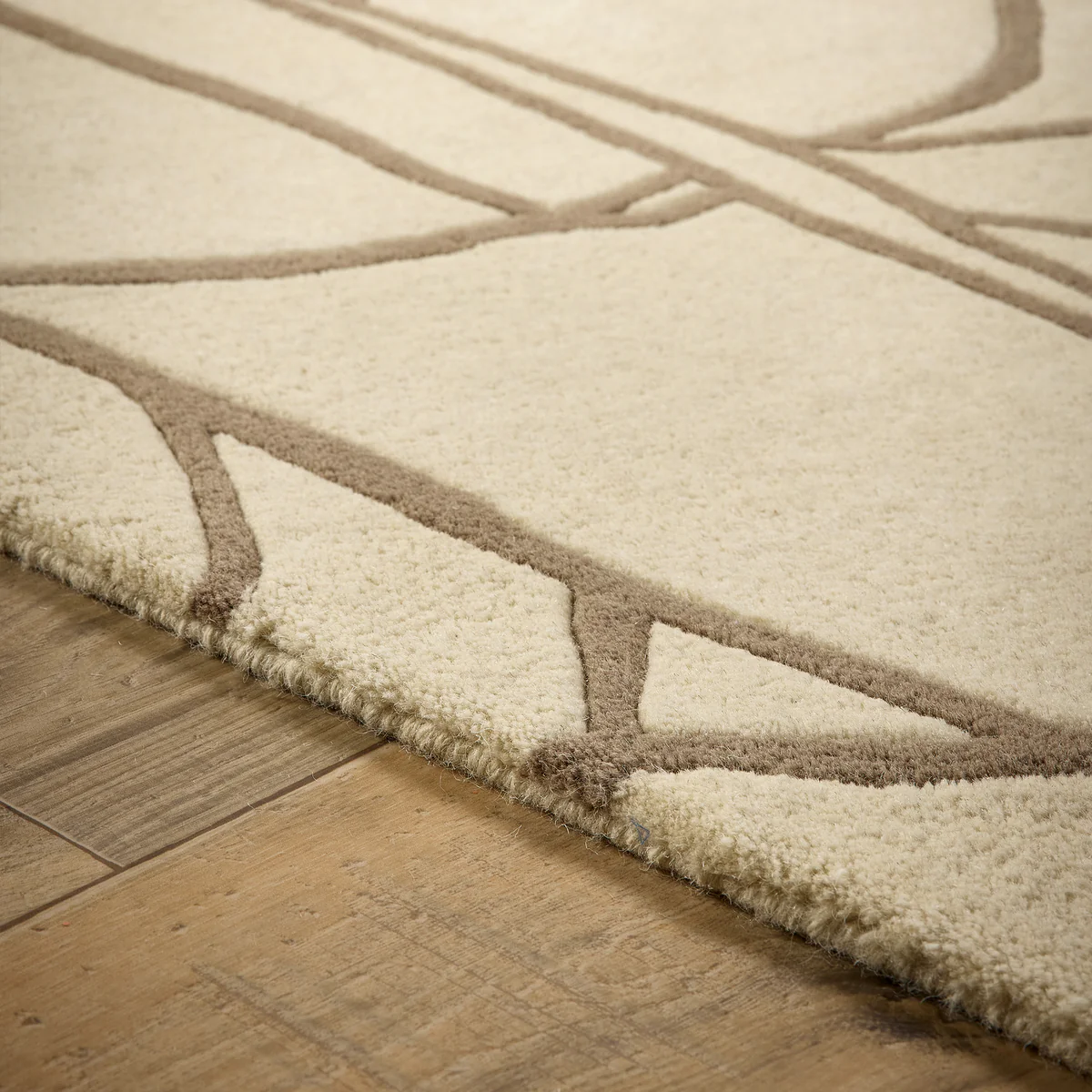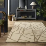 Tapis Moderniste beige effet Kintsugi — pure laine sculptée et raffinement contemporain