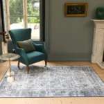 Tapis oriental gris bleu antidérapant & recyclable : sécurité et engagement écologique